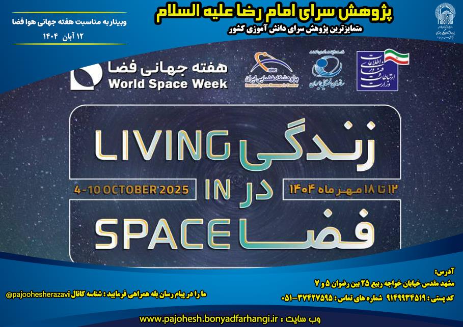 وبینارهای تخصصی با موضوعات مختلف در زمینه زندگی در فضا با مشارکت پژوهشسرای امام رضا (ع)، وزارت ارتباطات و فناوری اطلاعات، سازمان فضایی ایران و پژوهشگاه فضایی ایران به صورت در زمینه های